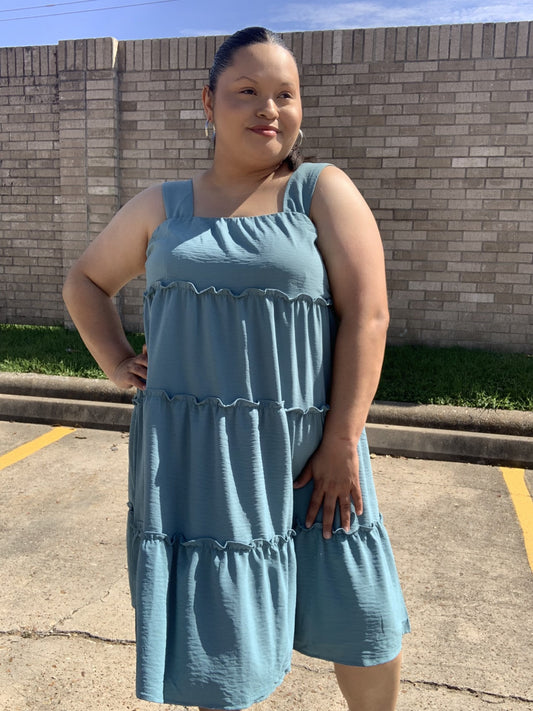 LAST ONE: Baby Blue Pom Pom Dress